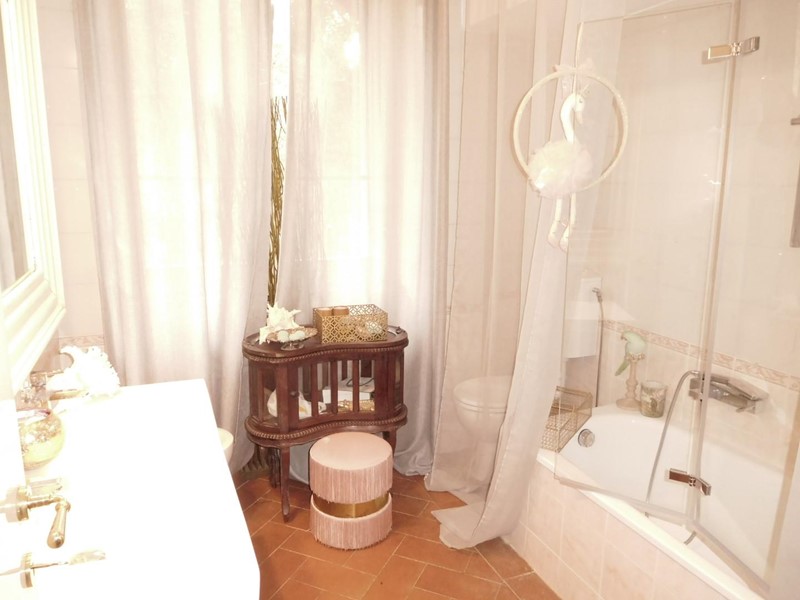 Tirrenia in villa trifamiliare appartamento luminoso ed in buone condizioni posto al piano rialzato e pari a tutta l'ampiezza dell'edificio composto da 7 vani complessivi per circa 160 mq, con terrazza di 23 mq lato sud, elegante loggiato di 55 mq e giardino privato su 3 lati per 500 mq circa. Entrando nel giardino privato e salendo qualche gradino si accede nell'appartamento e precisamente nel salone triplo (34 mq) che è esposto a SUD ed a Ovest mentre la zona notte coi servizi è raggiungibile percorrendo un corridoio munito di doppia entrata nel quale insistono il ripostiglio con finestra, la cucina con accesso diretto al giardino, 2 bagni c/f., una camera singola e due camere matrimoniali. Orientato verso sud ed attiguo al salone il terrazzo di 23 mq si affaccia e ci accompagna verso il loggiato (56 mq) ed giardino di 480 mq . Un passo carrabile a comune facilita il carico/scarico della spesa nei pressi della cucina . La struttura della casa favorisce diverse modifiche che possono accontentare le più svariare esigenze tenendo presente che l'esposizione è principalmente verso SUD ed OVEST. Possibilità di creare vari posti auto nel giardino privato. Allarme ed aria condizionata. Classe energetica: G - € 499.000,00 tr. Rif. 23/54