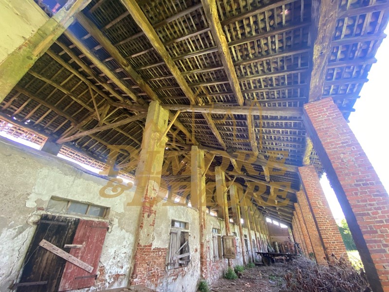 Attraversando la pregevole volta di ingresso si ha una panoramica del compendio immobiliare, trovando di fronte la chiesa consacrata facente parte dell'immobile in vendita, i bassi fabbricati ex deposito attrezzature agricole, i fienili ed i vecchi alloggi del contado.