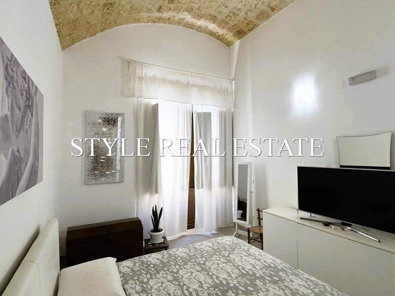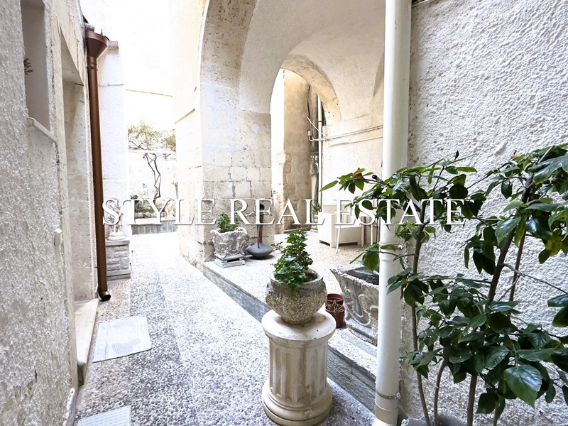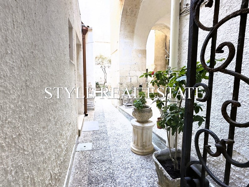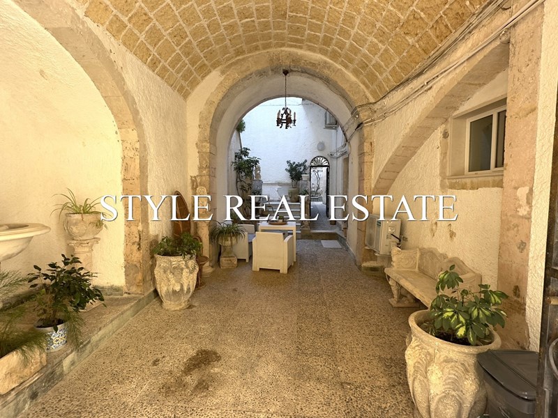 Si accede alla proprietà attraverso un ampio ingresso caratterizzato da imponenti archi in pietra che ci conduce verso un antico loggiato con volta a crociera che si apre ad un bellissimo giardino in parte ricoperto da una tettoia realizzata in pietra d'epoca.