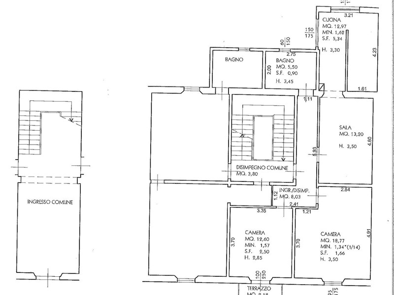 Ingresso a comune al piano terra, con scale per il piano primo.