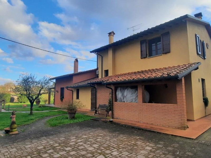Nella tranquillità della campagna toscana, circondata dall'ampio parco privato, casa a solo libera sui quattro lati su due piani fuori terra. L'immobile è già adattato ad ospitare due nuclei familiari distinti, uno con entrata dall'ampio loggiato che affaccia sul parco privato, internamente composto da cucina - pranzo, soggiorno, disimpegno, bagno, ripostiglio, cameretta e camera matrimoniale. Dal locale soggiorno si raggiunge il piano sottotetto con salottino. Sempre dal piano terreno, si accede all'altra unità abitativa composta da ampio soggiorno di ingresso, cucina - pranzo e loggia, al Piano 1° ed ultimo disimpegno, 2 bagni e 3 camere.