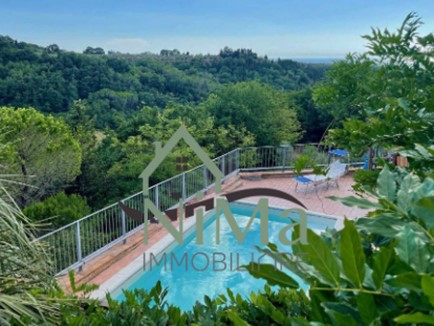 Proponiamo deliziosa villa bifamiliare libera su tre lati, con piscina privata, giardino e vista sulla costa. L'immobile si sviluppa su tre livelli ed è dotato di due ingressi. L'ingresso principale con portoncino blindato ci porta ad un luminoso soggiorno con camino, per godersi le serate invernali, cucina abitabile e bagno di servizio, proseguendo attraverso la scala in marmo si raggiunge il piano superiore dotato di camera matrimoniale con terrazza, camera doppia e bagno con doccia e finestra.