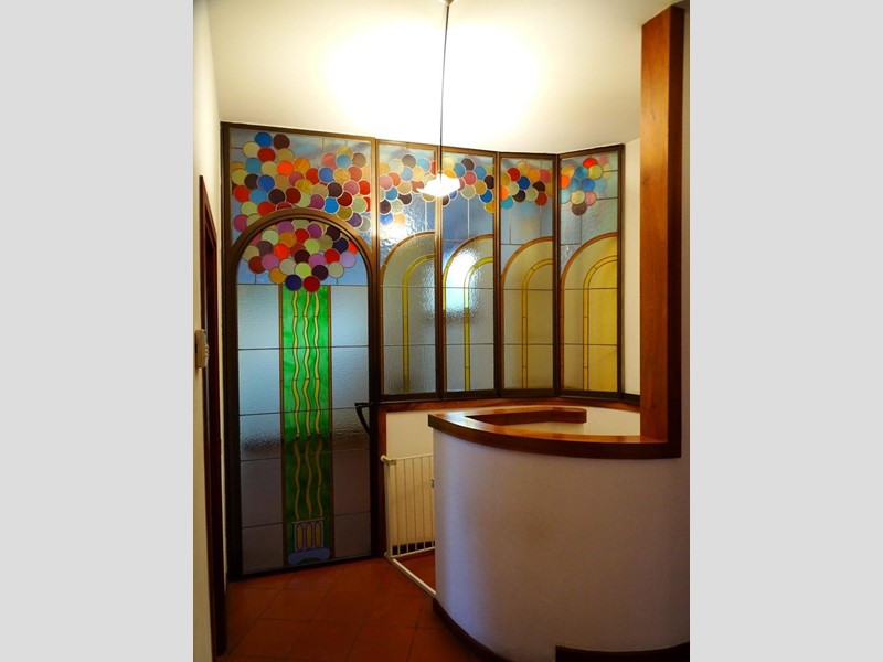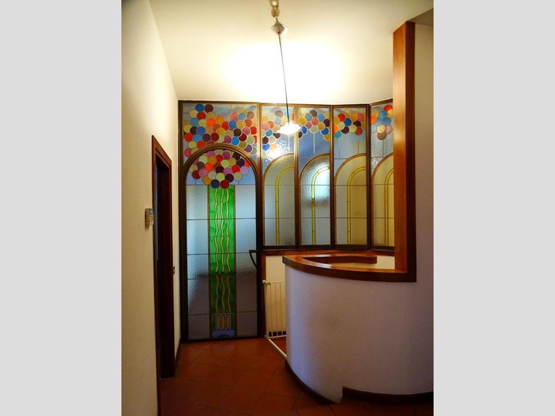 L'ingresso si apre su un vasto e luminoso salone, il cuore pulsante della casa, dove una caratteristica area semicircolare completamente vetrata ti invita a goderti la luce naturale in ogni momento. Un moderno camino aggiunge un tocco di calore, mentre la zona pranzo, anch'essa inondata di luce, si affaccia direttamente sul curatissimo giardino. La cucina, spaziosa e funzionale, è il luogo ideale per dare libero sfogo alla tua creatività culinaria.