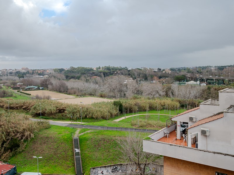 EUR MAGLIANA. precisamente in Via Pieve Fosciana, siamo lieti di proporre in esclusiva la vendita di un panoramico appartamento di circa 72 mq, con affaccio aperto sul verde della pista ciclabile sul Tevere, posto all’ultimo piano di un palazzo di 6 piani in cortina con ascensore.