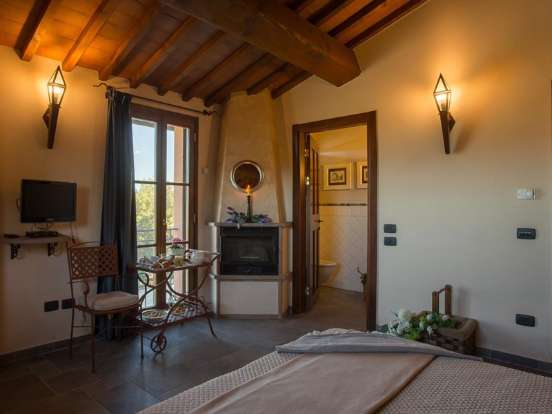 2 camere doppie , una camera matrimoniale, ognuna con il proprio bagno con doccia, camino rustico e TV satellitare ed infine un ripostiglio;