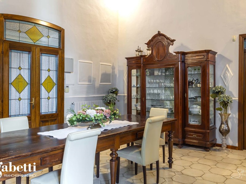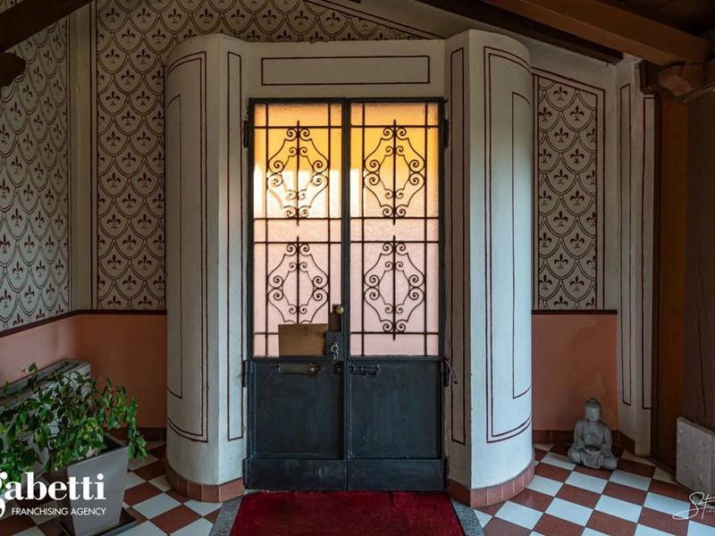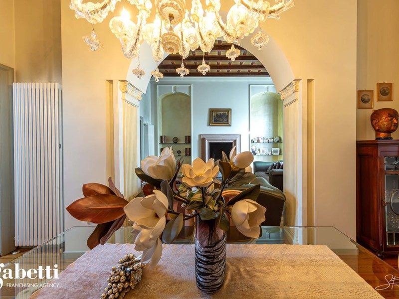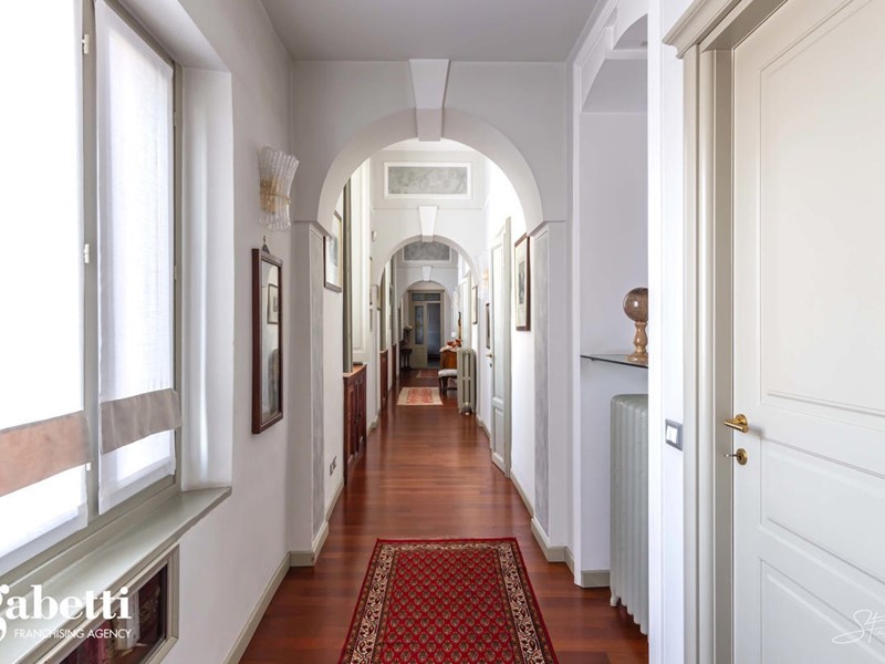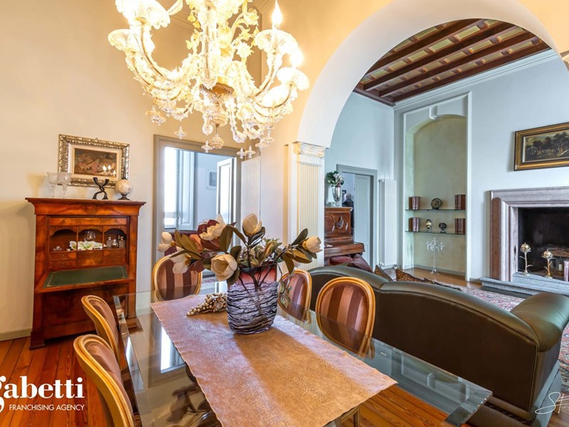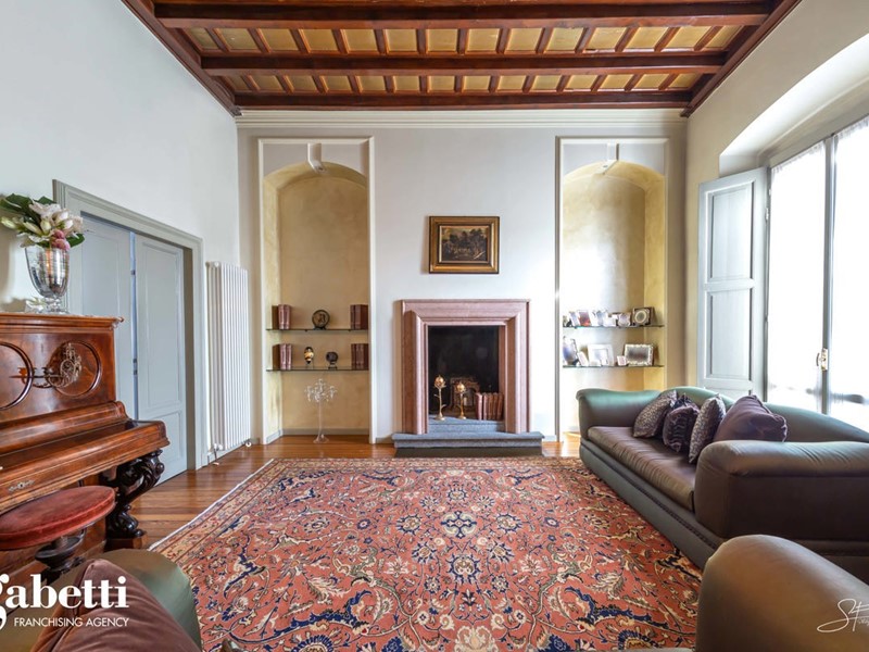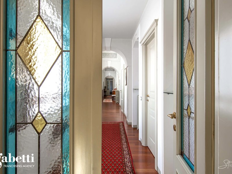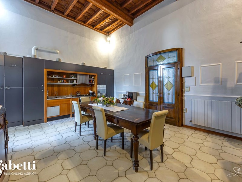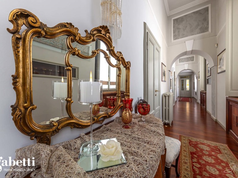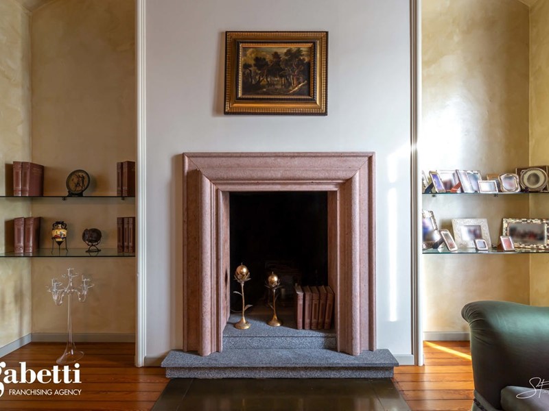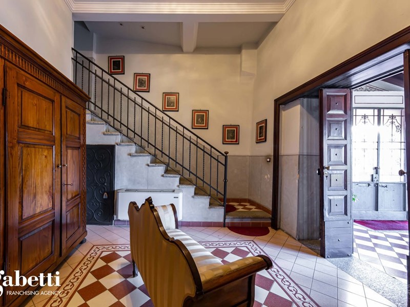 La proprietà immersa nel parco privato, si sviluppa su una superficie di 409 mq, distribuiti principalmente su unico livello al piano primo, oltre il caratteristico/storico ingresso dal piano terra. Al primo piano troviamo un luminoso soggiorno doppio con zona tinello pranzo, una grande cucina abitabile, doppi servizi, sono presenti tre spaziose camere da letto, un guardaroba, terrazzino immerso nel verde e caratteristica stanza tv.