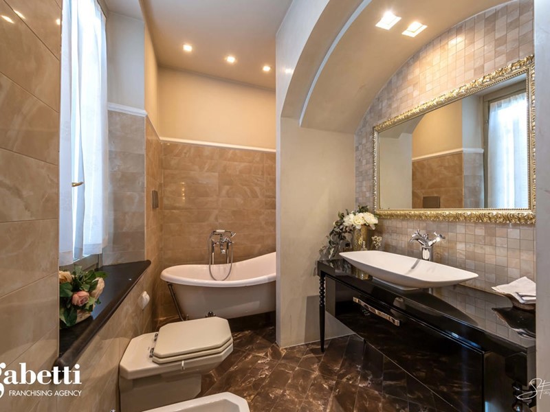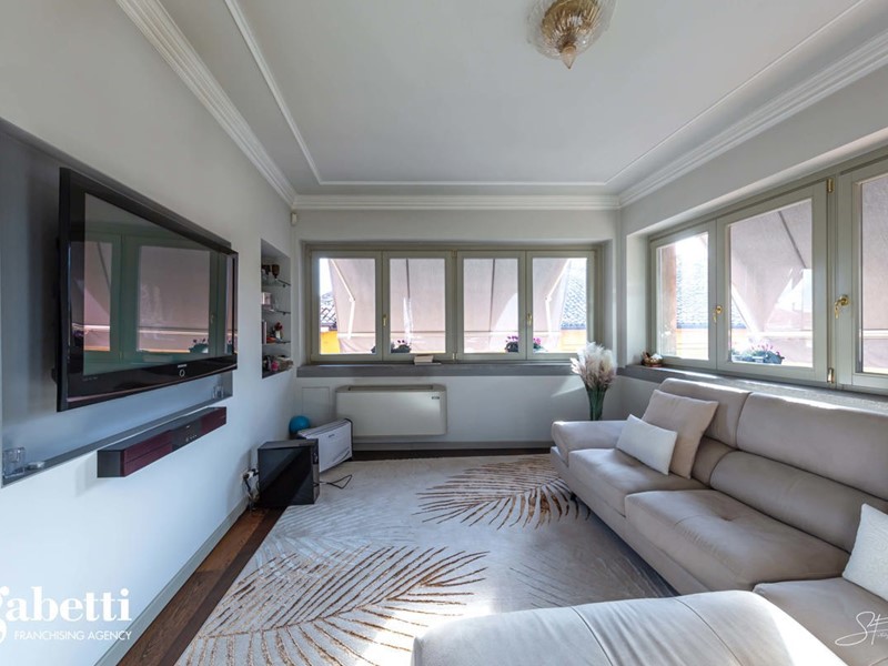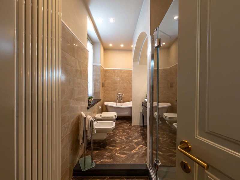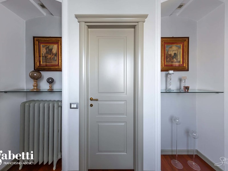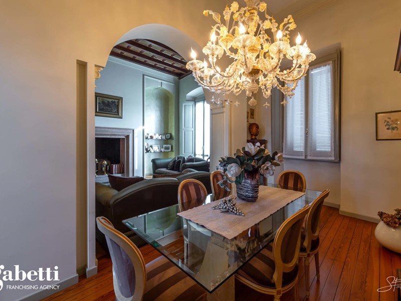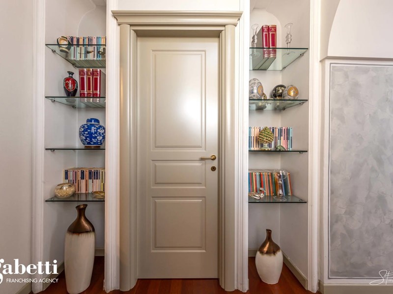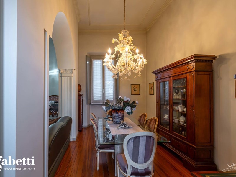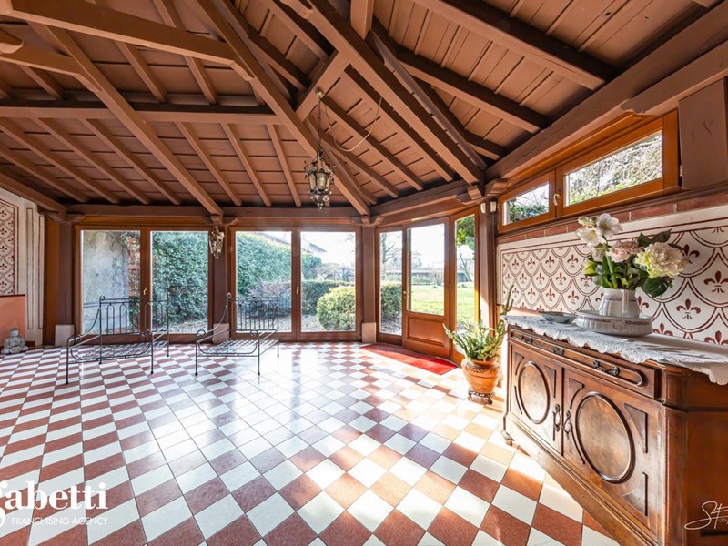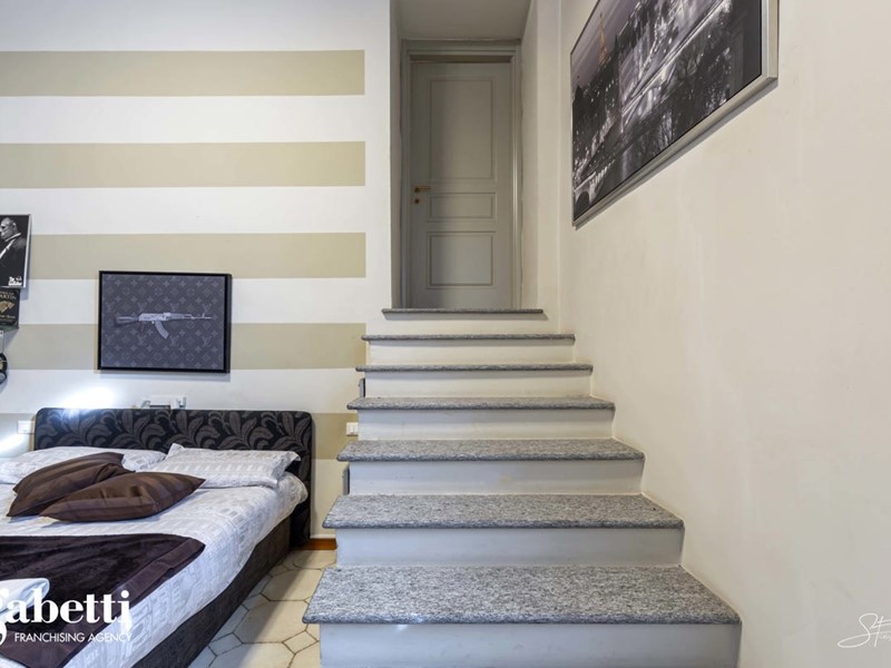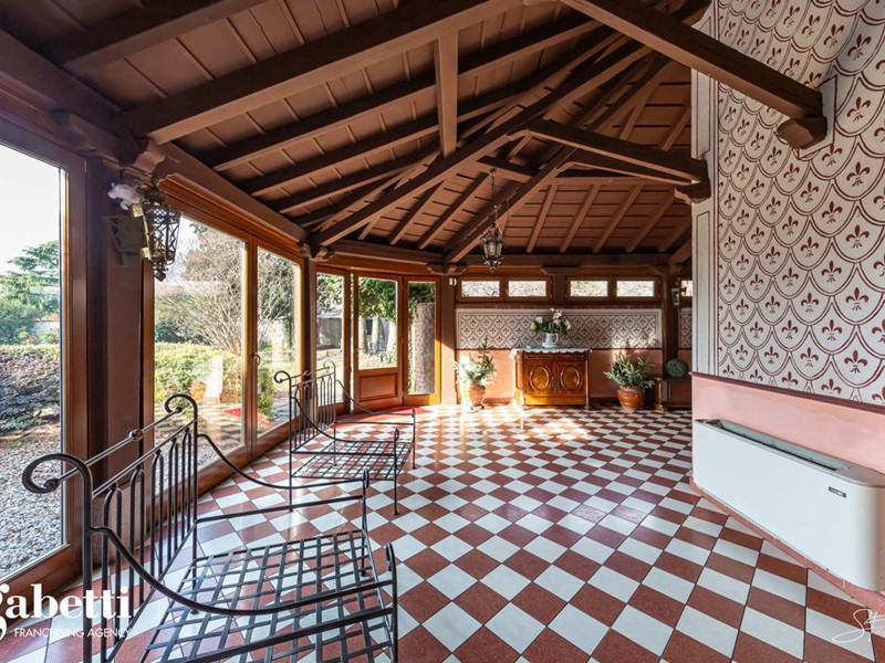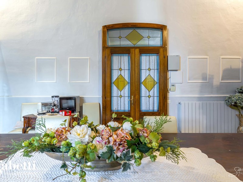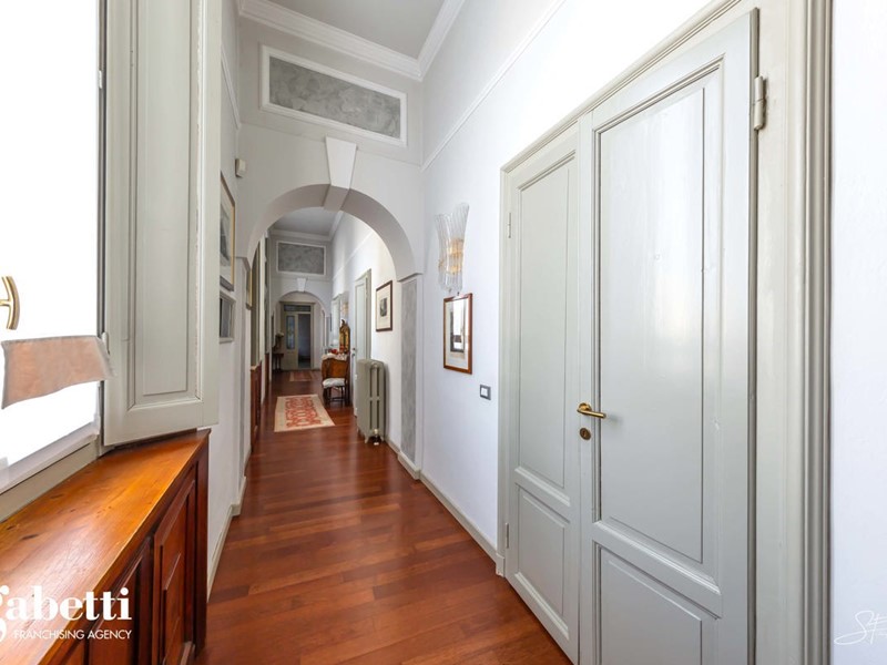 La proprietà immersa nel parco privato, si sviluppa su una superficie di 409 mq, distribuiti principalmente su unico livello al piano primo, oltre il caratteristico/storico ingresso dal piano terra. Al primo piano troviamo un luminoso soggiorno doppio con zona tinello pranzo, una grande cucina abitabile, doppi servizi, sono presenti tre spaziose camere da letto, un guardaroba, terrazzino immerso nel verde e caratteristica stanza tv.