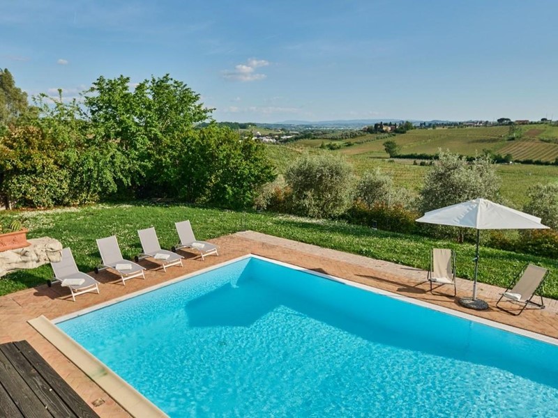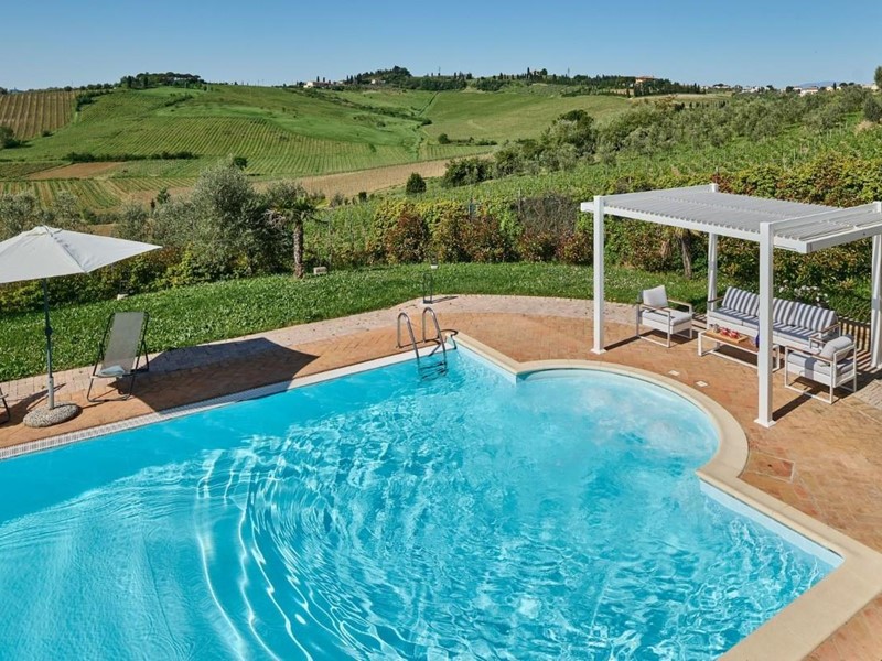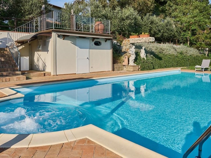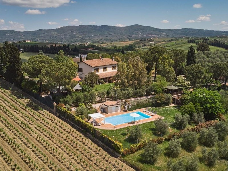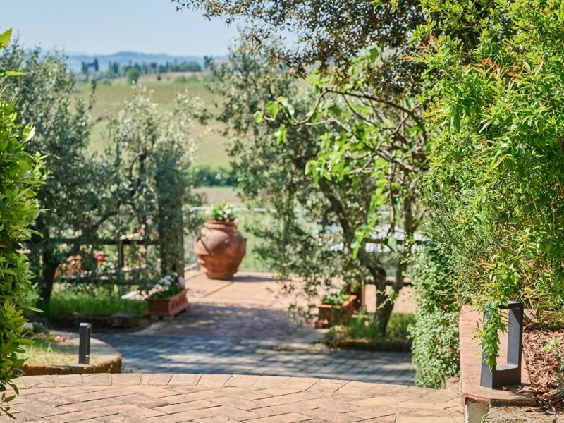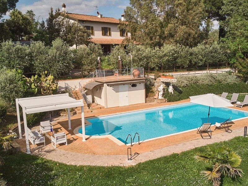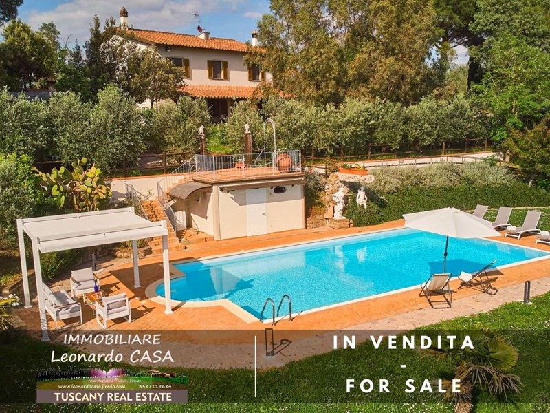 CERRETO GUIDI - VINCI collinare, sulle splendide colline di Leonardo da Vinci, in bellissima zona verde e molto panoramica, con assoluta privacy, bellissimo CASALE LIBERO SU 4 LATI con piscina, il tutto all'interno di un ampio giardino, terreno con uliveto e laghetto privato.
