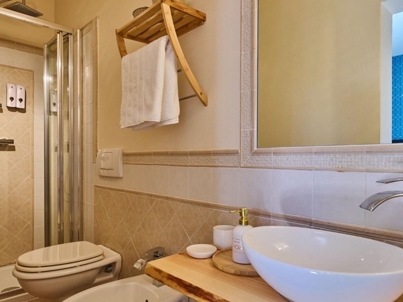La propreità è dotata di un ampio terreno di circa 4 ettari che circonda completamente il fabbricato , in cui si sono circa 300 piante di olivi.