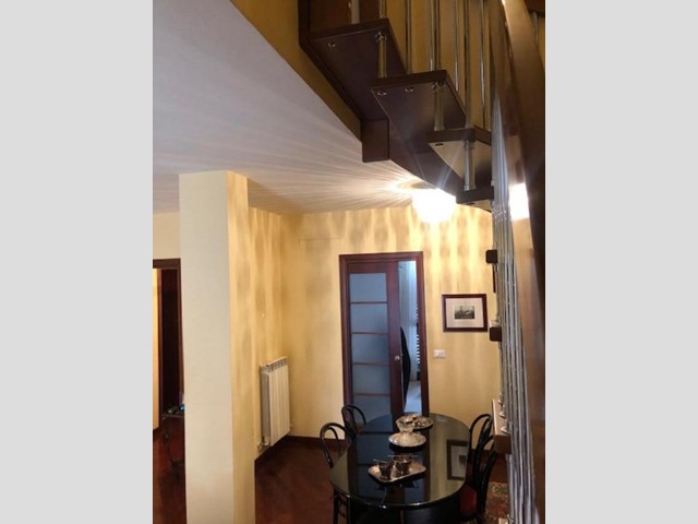 L’immobile è così strutturato: ingresso, ampio soggiorno e sala da pranzo con porta finestra che si affaccia sull’ampia terrazza vivibile. Grande cucina separata con ulteriore tavolo e comodo terrazzo di servizio, disimpegno con nicchia per armadiatura, una grandissima camera matrimoniale e un bagno con vasca. Al livello superiore, al piano sotto tetto, sono state attualmente ricavate due grandissime stanze adibite a camere, un grande bagno, la terrazza a tasca anch’essa grande e riservata. Comodo accesso alla parte più bassa del sotto tetto dove sono posizionate la caldaia e una zona lavanderia.