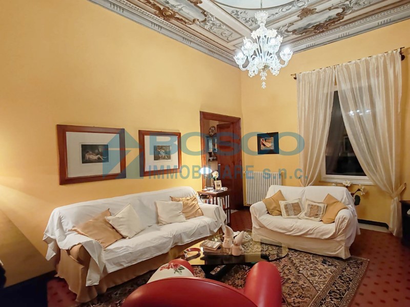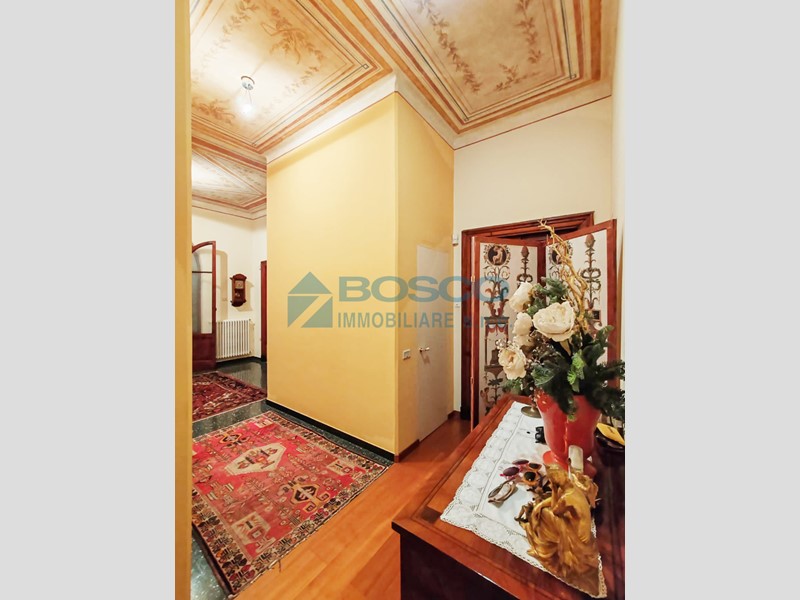 Con una superficie di circa 200 mq, l'appartamento è composto da un'entrata, cucina abitabile, sala da pranzo, salotto, studio, due camere da letto, doppi servizi, cabina armadio e ampio ripostiglio. I soffitti affrescati a volta e le porte originali conferiscono un tocco di eleganza, mentre il camino in marmo di stile francese aggiunge un'atmosfera accogliente.