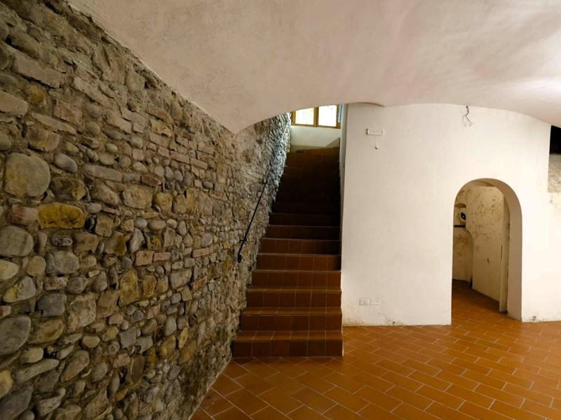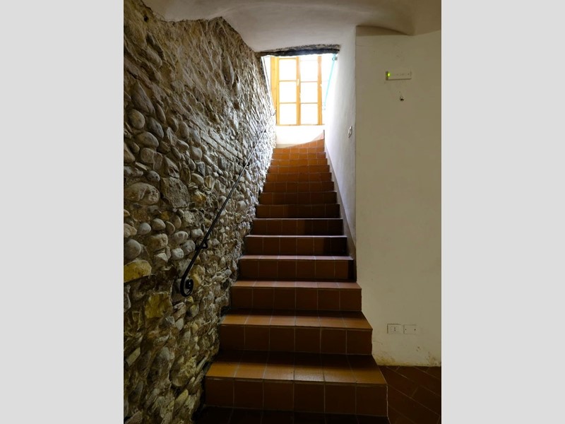 Tramite una scala interna si scende al piano interrato dove troviamo un ulteriore stanza con finiture delle pareti a pietra.