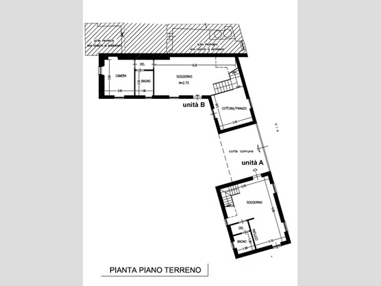 - unità "A" di mq. 80 su due livelli, SOGGIORNO angolo cottura e BAGNO al piano terra, più 2 CAMERE letto e BAGNO, TERRAZZO mq. 10 al piano primo;