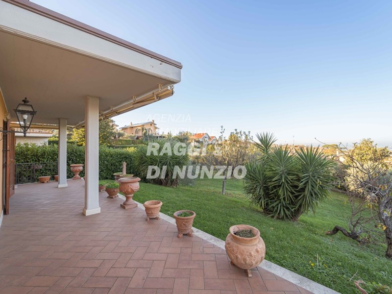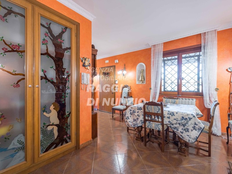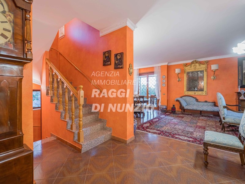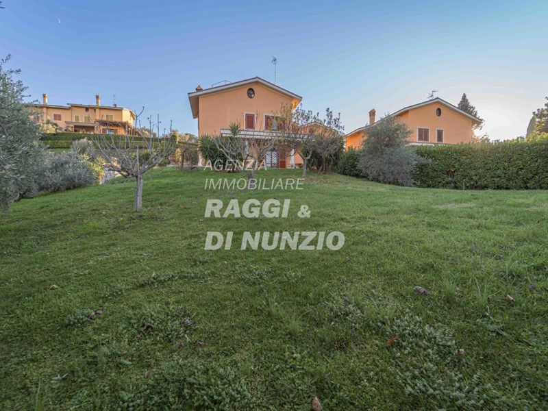 Frascati v. di Grotte Maria all'interno di un elegante residence vendesi porzione laterale di villa in trifamiliare ottimo stato panoramica composta da ingresso salone cucina zona pranzo bagno e portico al piano terra - camera matrimoniale con bagno interno due camere e bagno al piano primo - mansarda e terrazzino al piano secondo - sala hobby e box auto doppio al piano seminterrato - ampio giardino con irrigazione automatica - inferriate - persiane antiscasso - allarme - € 695.000,00.