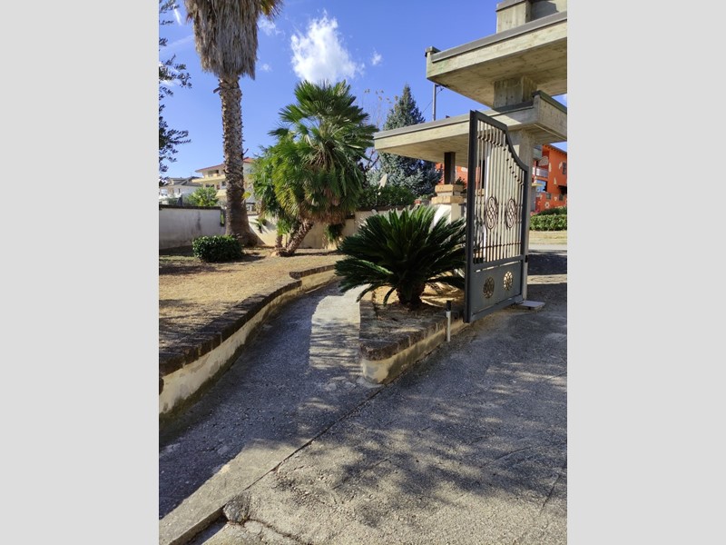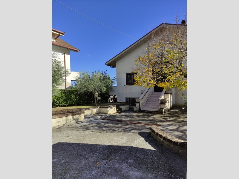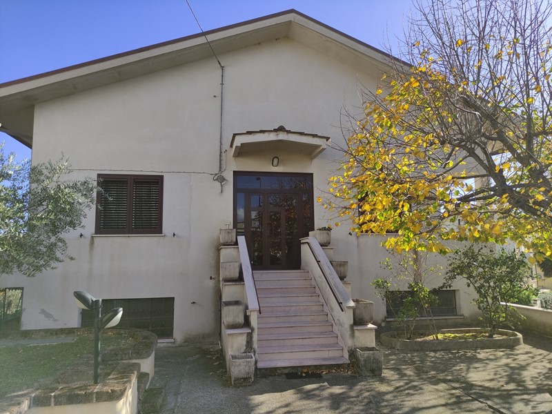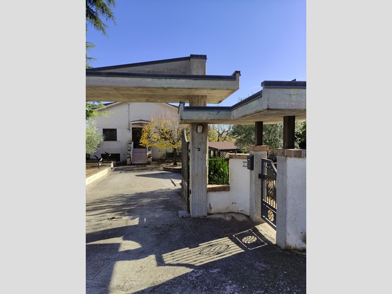 Villa indipendente in Villa Oliveti di Rosciano.\nProprietà completamente recintata e presenza di cancelli pedonale e carrabile a delimitazione dell'ampissima area esterna adibita sia a spazi verdi che camminamenti cementati e carrabili.\nL'abitazione si sviluppa al Piano Rialzato con ingresso in androne chiuso che accompagna al portone principale.\nEntrata in vasta zona giorno costituita da comodissimi ambienti dedicati a sala e soggiorno con caminetto, un primo disimpegno collega ad un locale multiuso facilmente occupabile da eventuale camera da letto e cucina comprensiva di angolo cottura, area pranzo e secondo caminetto, un secondo disimpegno accompagna alla zona notte formata da n. 3 spaziose camere da letto tutte con uscita su balcone esterno, antibagno/ripostiglio a disimpegno di un elegante bagno con vasca idromassaggio e secondo servizio igienico.\nNella cucina è presente una scala interna in legno per accedere al livello sottotetto costituito da un unico grande ambiente non rifinito.\nPossibilità di trattativa comprensiva di locale artigianale al piano seminterrato di oltre 200 mq. avente apposito cancello carrabile che ne consente un accesso indipendente dall'abitazione sovrastante. (Vedi Codice Rif. V/029)