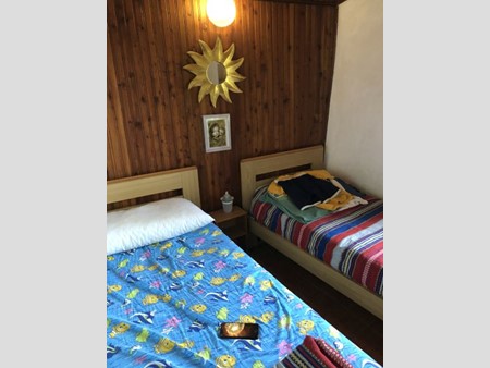 la casa principale è composta da un ingresso direttamente nel soggiorno con camino, cucinotto e dispensa, scala di collegamento al piano primo dove troviamo un disimpegno, un bagno con la mezza vasca e finestra a tetto(lucernaio), una cameretta con vista sulla vallata e un'ampia camera matrimoniale con finestra e portafinestra con uscita nel giardino. Esternamente, sul fronte della casa troviamo piccola corta attrezzata con zona pranzo, barbeque e servita d'acqua, e sul retro, troviamo una struttura in sasso divisa in quattro cantine su due livelli, anch'essa circondata dal terreno di proprietà