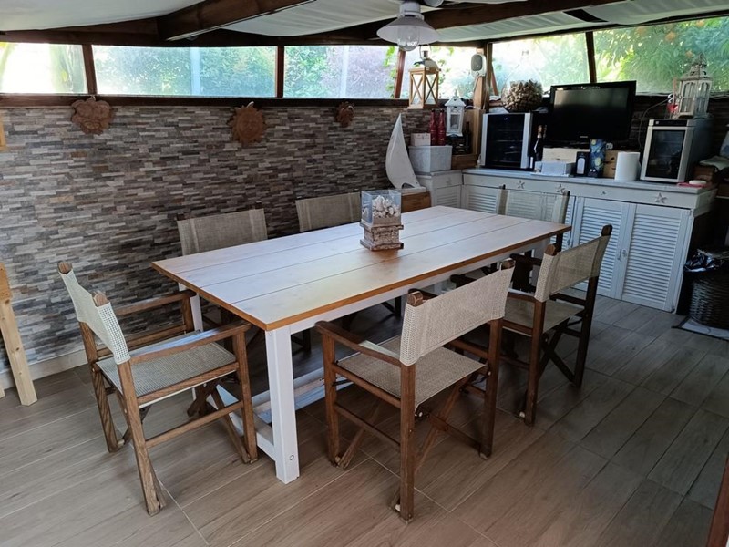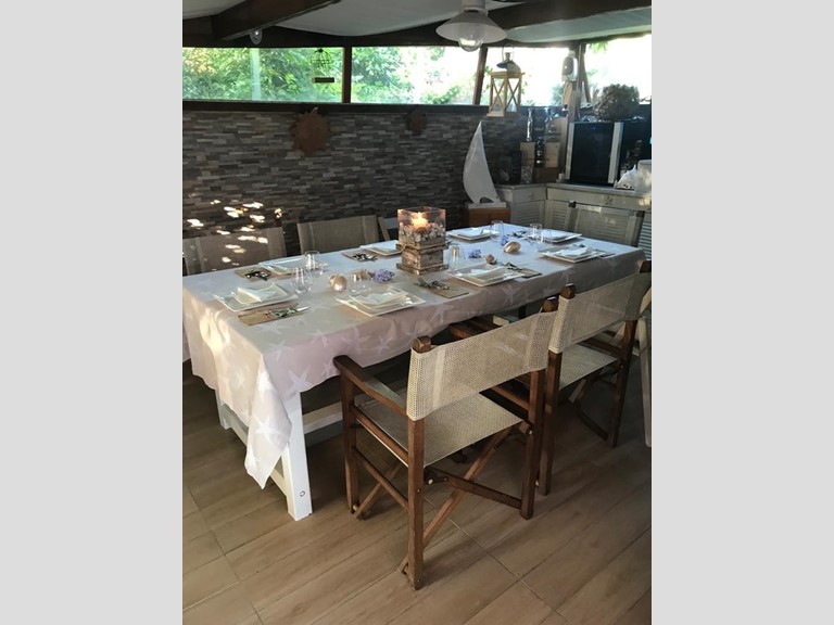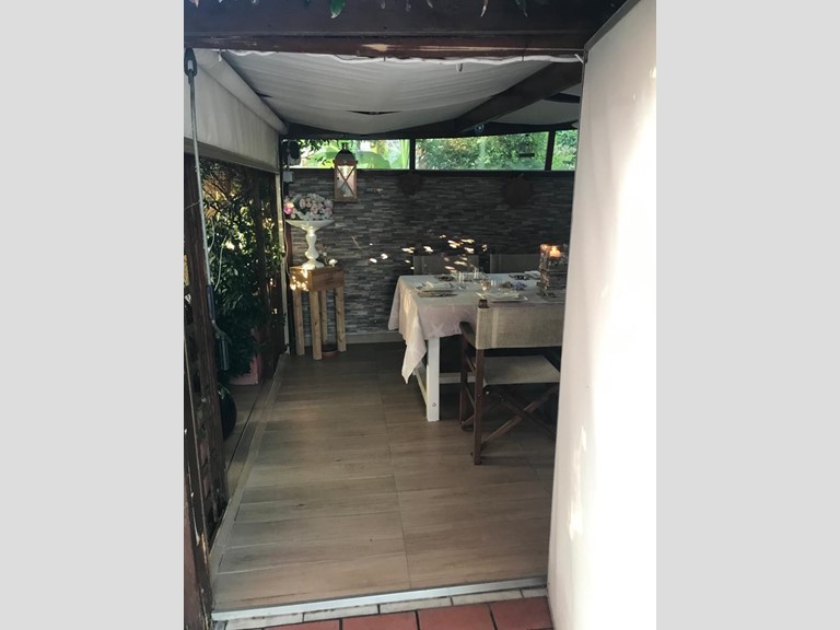 Dall' esterno si accede alla zona della taverna molto comoda e attrezzata di cucina con ampia zona pranzo e soggiorno con camino, la zona sgombero/rispostiglio e i bagno.