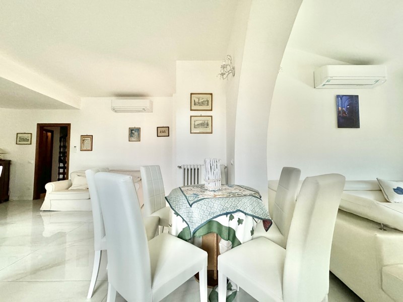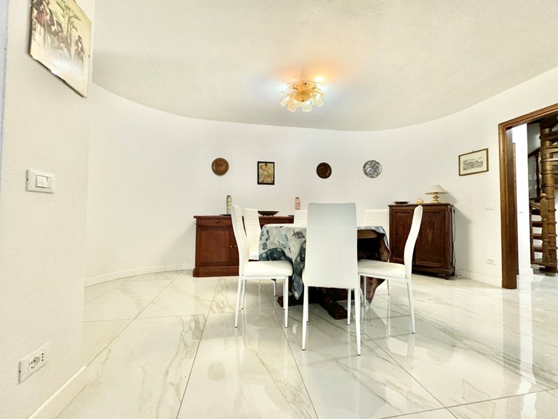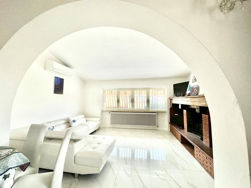 L'immobile si presenta con accesso da spazio esterno piastrellato con posti auto, proseguendo troviamo un ampio ingresso aperto al salone che accoglie gli ospiti con un atmosfera luminosa e ariosa graziealla ampia parete finestrata che permette alla luce naturale di filtrare delicatamente all'interno, arredato con gusto e stile offre uno spazio ideale relax con pavimenti in gress lucido che conferiscono un tocco di raffinatezza all'ambiente.