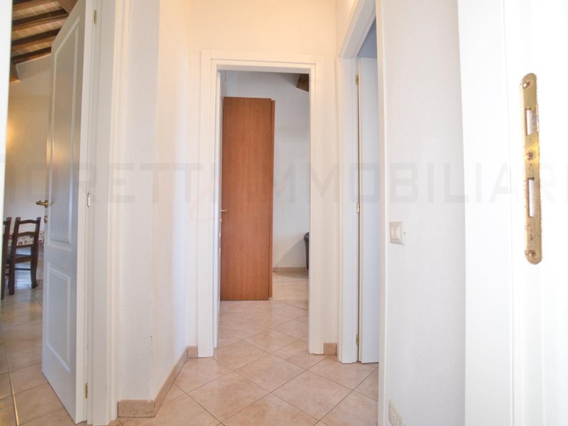 Da una piccola resede privata, troviamo la comoda scala che conduce ad una spaziosa terrazza coperta; da lì si accede alla zona giorno con angolo cottura. Tramite un piccolo disimpegno, arriviamo alla camera matrimoniale, ad un'ampia camera singola e al bagno. Completa la proprietà una autorimessa di 16 Mq ed un posto auto di 13 Mq. L'appartamento viene venduto arredato, ha i soffitti con travi, travetti e mezzane, gli impianti sono autonomi. Le spese condominiali ammontano a circa 60 euro al mese e comprendono, l'amministratore, le luci esterne, la manutenzione e cura del meraviglioso parco che circonda il fabbricato ed un acconto sul consumo dell'acqua, che viene poi eventualmente conguagliato in sede di bilancio di chiusura in base alle letture dei singoli contatori. Le rifiniture della casa e dell'intero complesso sono di buona qualità. Venturina Terme si raggiunge in 2 minuti, Riotorto dista circa 5 Km. Ideale per chi cerca una seconda casa lontana dal caos della città.