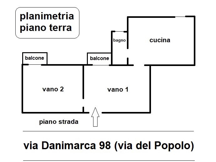 Vendo appartamento su due livelli sito in San Pietro in Amantea (CS) al civico 98 di via Danimarca (via del Popolo). Il primo livello al piano strada, consta di due vani, una cucina, un bagno e due balconi per un totale calpestabile di circa mq. 80. Il secondo livello seminterrato (con accesso laterale dal piano strada come da planimetria allegata) è composto da due vani per un totale di circa mq 60 calpestabili, che godono di ampio cortile antistante e di attiguo terreno agricolo come da planimetria.