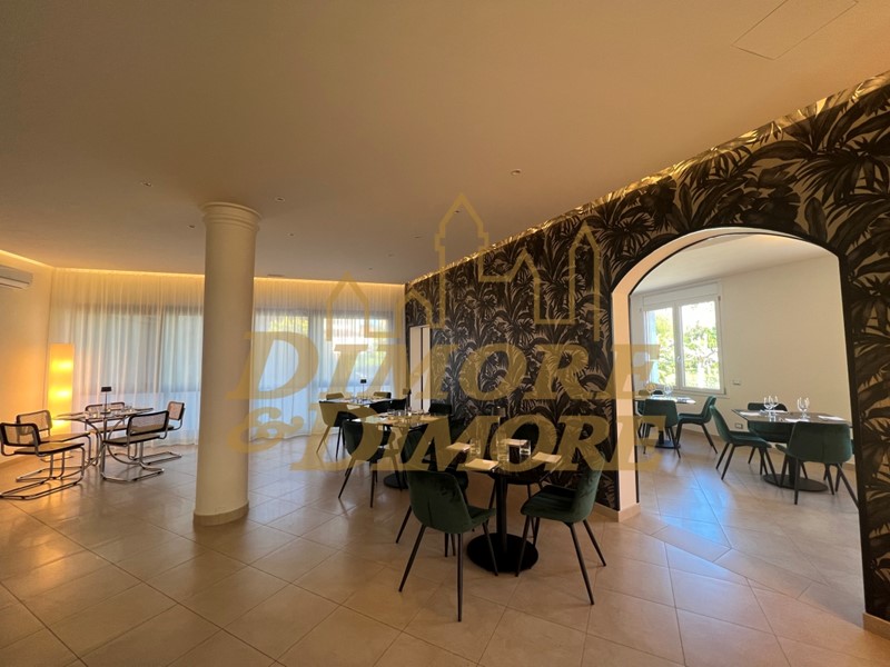 due sale di circa 120 mq per ospiti di cui una con bancone bar, cucina, ripostiglio, doppi servizi, spogliatoio, servizi per il personale oltre ai terrazzi esterni di circa 75 mq e un altro terrazzino con vista lago situato all'ultimo piano dell'edificio ottimo per organizzare aperitivi serali.