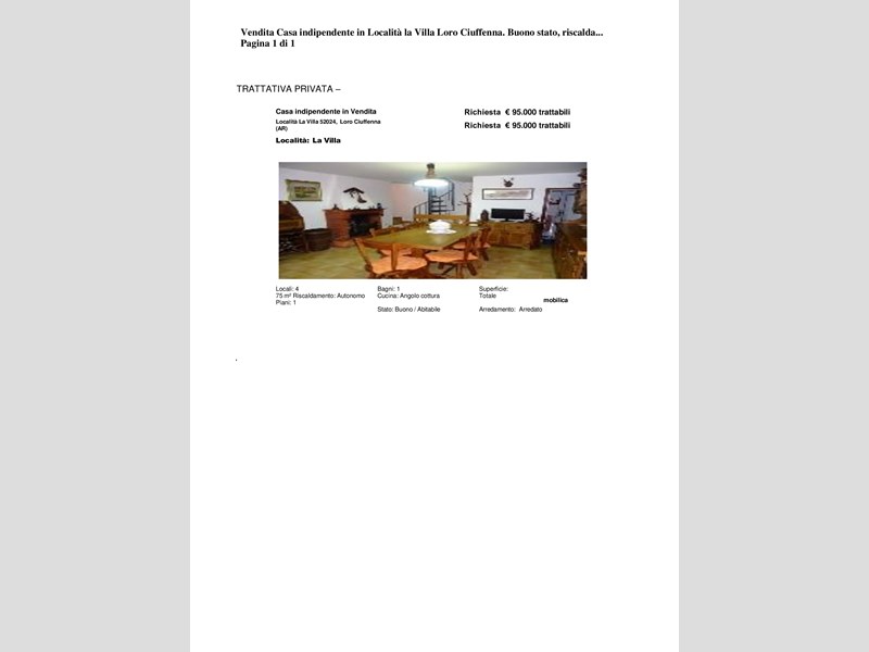 Quadrilocale in Vendita a Loro Ciuffenna, 95'000€, 75 m², arredato