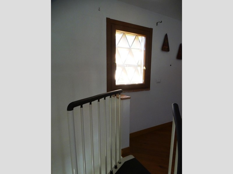 Accanto all’edificio una struttura in legno ospita due auto al coperto e sorregge i pannelli di un impianto solare-termico. L’acqua calda prodotta dai pannelli solari integra quella dell’impianto di riscaldamento e quella sanitaria nell’appartamento grande. La villa è dotata anche di un impianto fotovoltaico (potenza di picco 8,2 KW) con batterie di accumulo (9,6 Kwh) per la produzione di energia elettrica. In entrambi gli appartamenti sono presenti impianti di climatizzazione caldo/freddo.