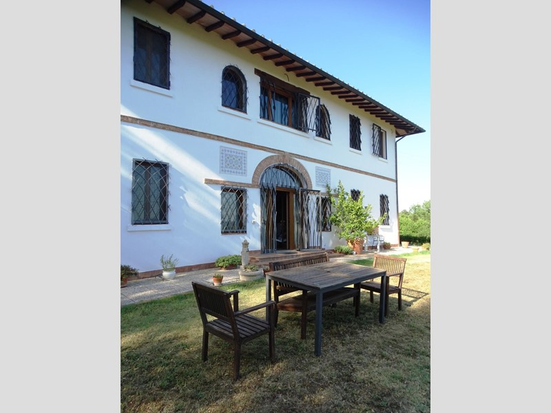 Nel cuore della Toscana, a mezz'ora di auto dagli aeroporti di Pisa e Firenze, situata in posizione dominante e panoramica sulla sommità di un piccolo colle, isolata nella tranquillità della campagna ma vicina ad un centro abitato, vendesi proprietà composta da una villa padronale della superficie complessiva di 394 mq. circa con progetto approvato per la realizzazione di una piscina nel parco circostante, da un fienile di 91 mq. circa, posto a qualche centinaio di metri di distanza, e da oltre 5 ettari di terreno agricolo. Tra la villa ed il fienile sono presenti un piccolo uliveto ed alcuni alberi da frutto.