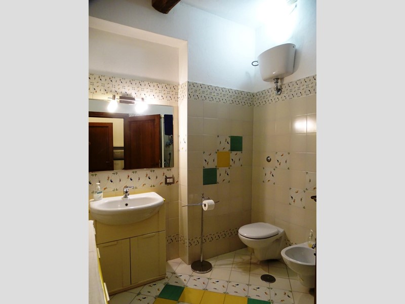 L’appartamento più grande si caratterizza per un’ampia zona giorno al piano terra, con ingresso/soggiorno/pranzo con caminetto e grande cucina abitabile, oltre a ripostiglio e bagno con antibagno. Al piano superiore la zona notte comprende tre camere da letto matrimoniali, due bagni con doccia e un ripostiglio.