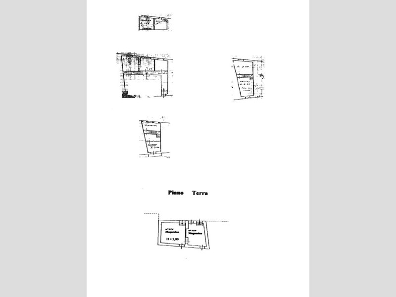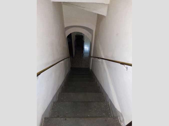 Piano terra: ingresso, due camere e bagno, altri due vani magazzino con accesso sia dall'esterno che dall'appartamento e una scala che collega le due cantine.