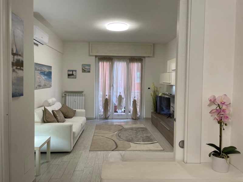 Sestri Levante, a 30 metri dalle spiagge di Sant'Anna, affittasi appartamento completamente ristrutturato, composto da ingresso, soggiorno con divano letto, cucina abitabile, camera matrimoniale, bagno, balcone e terrazzo vivibile scorcio mare. Immobile disponibile per locazioni ad uso turistico e il prezzo varia in base al periodo e alla durata del soggiorno.