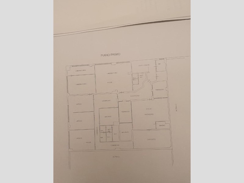 Attualmente diviso internamente in tre unità ( laboratorio, ufficio e magazzino) oltre quattro servizi.