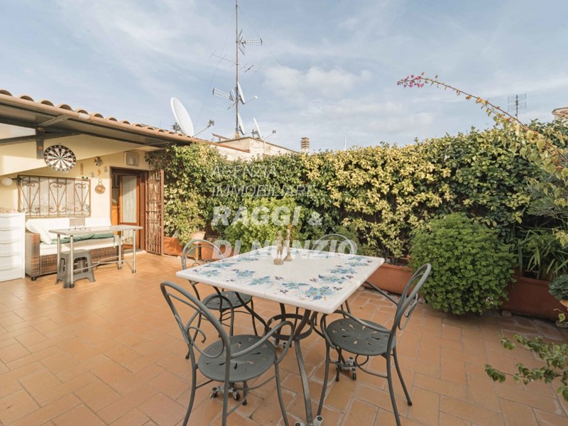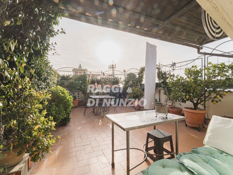 Frascati centrale V. Felice Ferri vendesi nuda proprietà di attico con ascensore in palazzo degli anni '80 composto da soggiorno due camere studio due bagni cucina a vista zona pranzo con camino due balconi ampio terrazzo - pavimenti in cotto fiorentino - aria condizionata - videocitofono - allarme perimetrale e volumetrico - termoautonomo - zanzariere - box auto al piano interrato - vicino alla stazione del treno - panoramico -- proprietario del '44 - proprietaria del '46 - € 320.000,00
