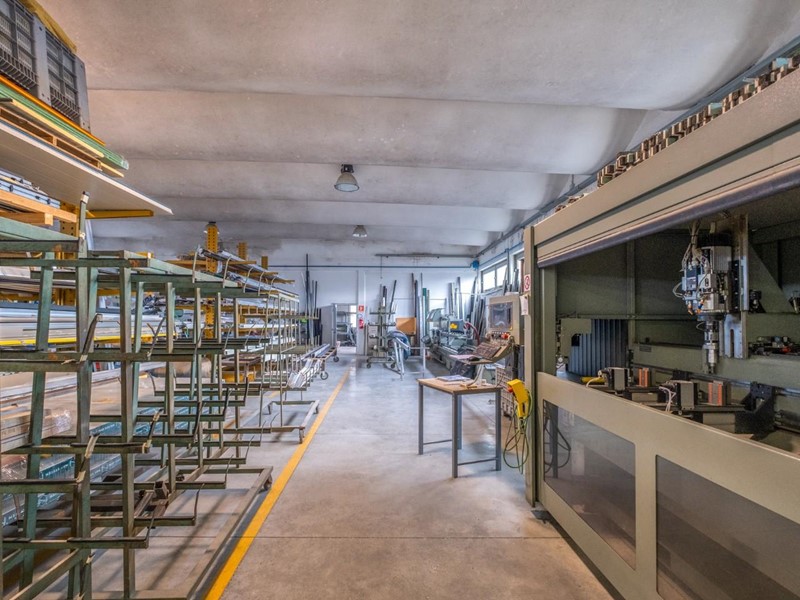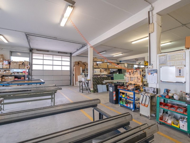 Al piano terra vanta una superficie di Mq. 794 in parte adibita a commerciale ed in parte a locale laboratorio artigianale- officina con altezza interna di 6 metri. Sempre al piano terra troviamo la zona di servizio del capannone con bagni e spogliatoio, il locale centrale termica e vari locali ripostiglio oltre a tettoia di ricovero materiali. Sempre al Piano terra un ingresso con accesso sia dall'esterno che dall'interno del capannone, conduce al piano superiore.