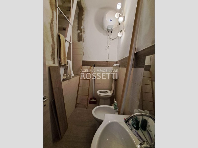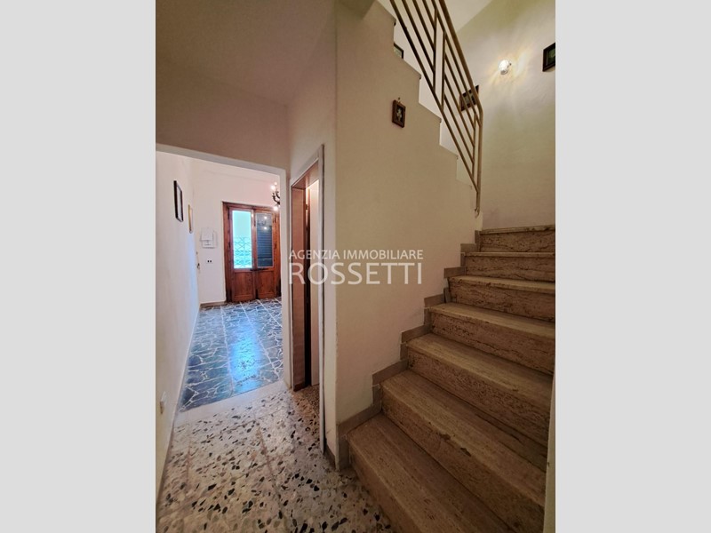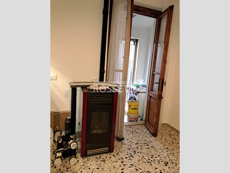Terratetto parzialmente ristrutturato e semiarredato, composto da ingresso nel soggiorno, cucina abitabile con accesso sull'esterno, piccolo bagno finestrato e ripostiglio sottoscala. Al piano primo due grandi camere matrimoniali e bagno. Sul fronte della casa posto auto esclusivo. Impianto di riscaldamento con stufa a pellet, possibilità di allacciamento al metano.