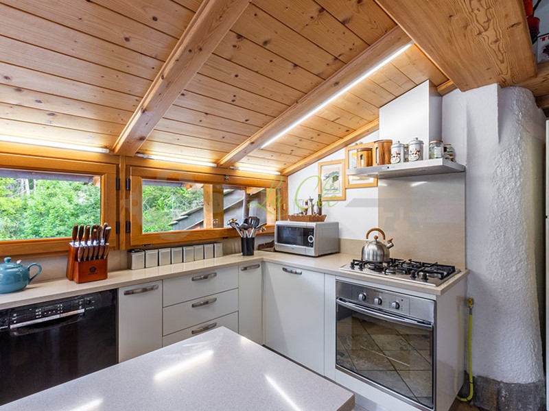 La villetta, in posizione tranquilla e riservata, con uno sfondo sulla catena del Monte Bianco si compone di: caldo e accogliente soggiorno con camino a legna e zona pranzo, cucina separata, completamente accessoriata, con accesso verso l'esterno, al portico e al giardino di proprietà, che circonda quasi interamente l'abitazione.