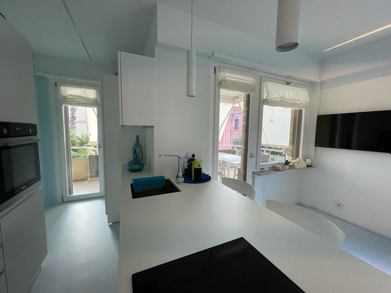 Sanremo zona La Brezza, stupendo ed unico nel suo genere, appartamento completamente di NUOVA e recentissima ristrutturazione di circa 90 mq. piu' ampio terrazzo che avvolge tutto l'alloggio, esposizione Sud-Est, con parziale vista mare raggiungibile a piedi; a soli 100 mt. possiamo trovare una delle spiagge piu' belle di Sanremo ed anche la famosa e comodissima ciclabile . L'appartamento è composto da ampio e luminoso ingresso, soggiorno con parete a cottura completa di arredo , due camere matrimoniali ( una con bagno privato) , bagno patronale, ampio terrazzo vivibile, cantina al piano terreno comoda per tutto, posto auto ampio in autorimessa raggiungibile anche con ascensore interno. L'appartamento risulta completo di tutti i confort compresa Climatizzazione C/F, tapparelle automatizzate, Riscaldamento autonomo con contabilizzatore di calore . Facoltativamente si puo' acquistare una Cabina in spiaggia privata/condominiale con ulteriori euro 25.000,00 . Per informazioni telefonateci .