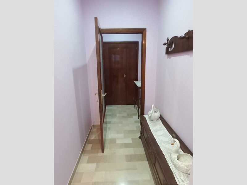 Monte San Pietrangeli (FM), zona semi-centrale, contesto condominiale. Appartamento di circa 100 m² completamente ristrutturato al piano terzo con ascensore composto da: ampio salone, cucina abitabile con balcone, due camere da letto di cui una con balcone, una cameretta, bagno, disimpegno. Immobile completamente risistemato, impianto elettrico ed idraulico totalmente rivisti, bagno ristrutturato, pavimentazione rinnovata in alcuni ambienti. Soluzione chiavi in mano, quasi mai abitata. Arredamento realizzato su misura e poco utilizzato incluso nella vendita. Stabile in ottime condizioni, anch'esso ristrutturato recentemente. Classe energetica G. Garage esterno privato di circa 18 m² con altezza soppalcabile. Cantina di pertinenza.