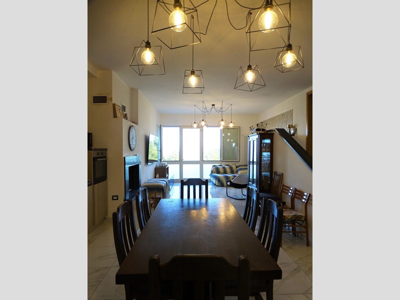 In quella principale, il piano terra è dedicato alla zona giorno, molto spaziosa, con soggiorno, cucina/pranzo, bagno di servizio. Salendo alcuni gradini si accede al vano scala centrale, che conduce al piano superiore, dove si trova la zona notte, composta da tre camere matrimoniali (una delle quali con affaccio sotto una loggia), disimpegno e due bagni, entrambi finestrati e dotati di doccia. Un’altra scala permette di raggiungere una piccola mansarda e i locali sottotetto.