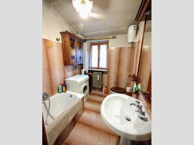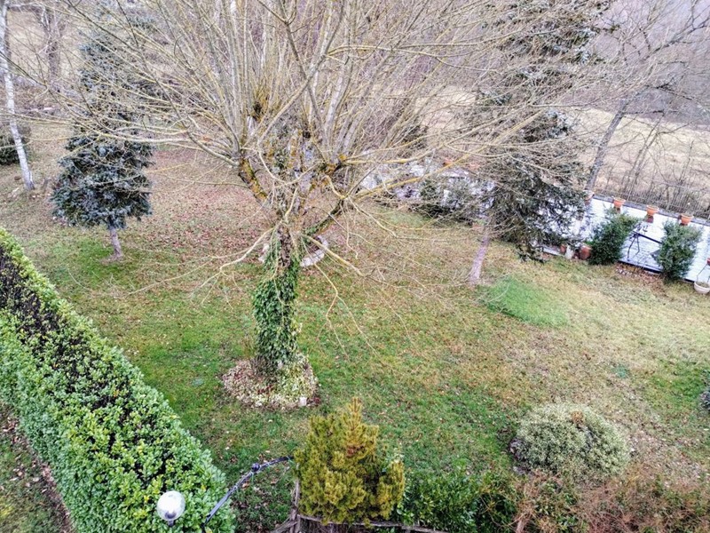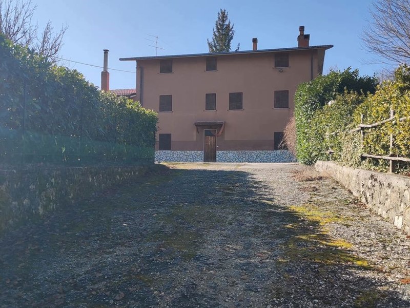 Appartamento 2°p. con ingresso indipendente: salone con camino, cucina abitabile, 3 camere, 2 bagni, giardino al p.t. di ca. 1.000 mq più altra corte al p.t. e box auto. Cl.en. G. I.p.e.>175 kwh/mq/anno.
