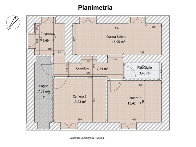 Due Camere da letto Matrimoniali, Ampio Salone con Cucina, Bagno, Corridoio, Ingresso, Ripostiglio.