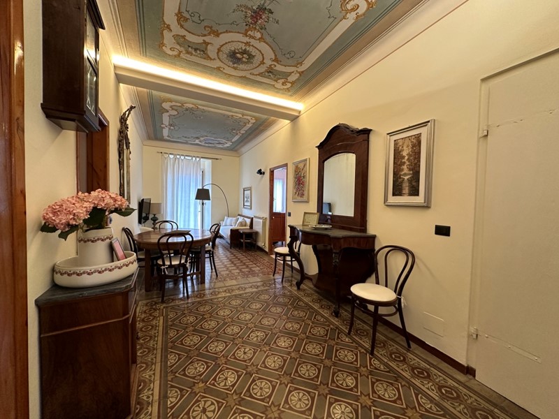 Sestri Levante, centro, in zona comoda a negozi e servizi, a pochi metri dalle spiagge, affittasi con contratto annuale o per periodi inferiori da concordare, appartamento dal fascino storico, con soffitti affrescati e tipia pavimentazione ligure, composto da ingresso, soggiorno, cucina abitabile, due ampie camere, camera singola, bagno, grande terrazza in parte loggiata dove trascorerre piacevoli giornate nella bella stagione per pranzare/cenare in compagnia, posto auto. l'immobile è arredato con cura ed attenzione ai dettagli. Spese di gestione minime. Il prezzo della locazione è in base alla durata, al periodo e alla stagione.