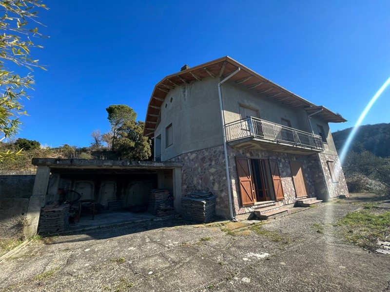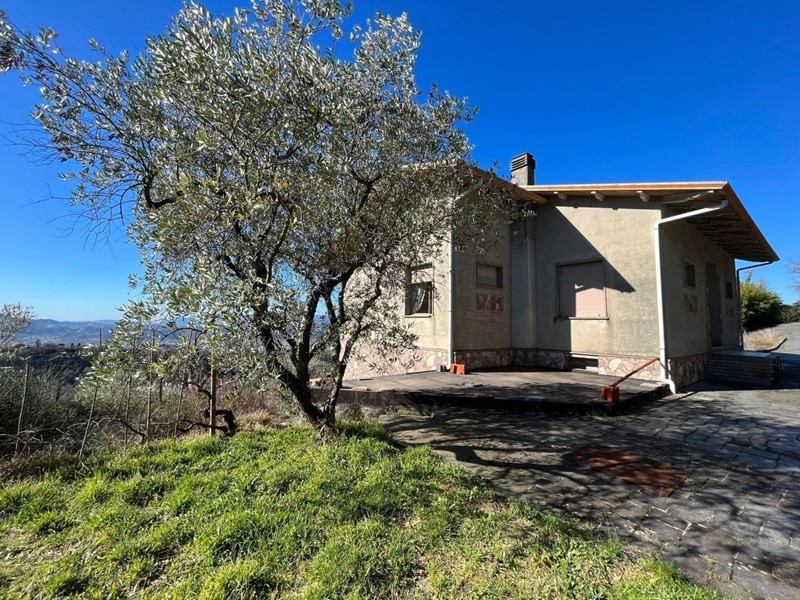 Collocata in contesto verdeggiante, con vista a 180° da Livorno alle 5 Terre, si vende villa indipendente con possibilità di creare 2 unità abitative distinte con accessi separati, la quale si compone di: piano terra che si sviluppa in 120 mq calpestabili, suddivisi in salone, cucina abitabile, 3 camere matrimoniali, servizio, balcone panoramico e terrazza di ottima metratura. Mediante scala interna si accede al piano sottostante che si completa di ulteriore salone con affaccio su corte, cucina abitabile, servizio e garage.
