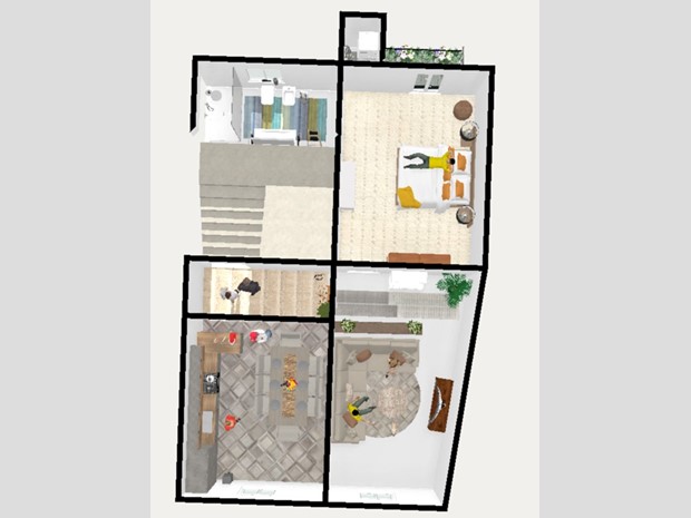 L'immobile è composto da tre appartamenti di circa 50 mq l'uno,posti al primo,secondo e terzo piano e sono così composti: ingresso, soggiorno (che potrebbe diventare una seconda camera), cucina abitabile, disimpegno, camera matrimoniale con accesso al balcone, dove insiste un ripostiglio, ideale per una eventuale lavanderia e bagno con finestra e doccia.