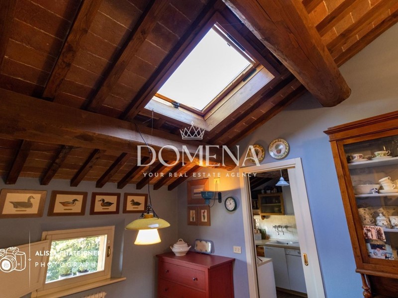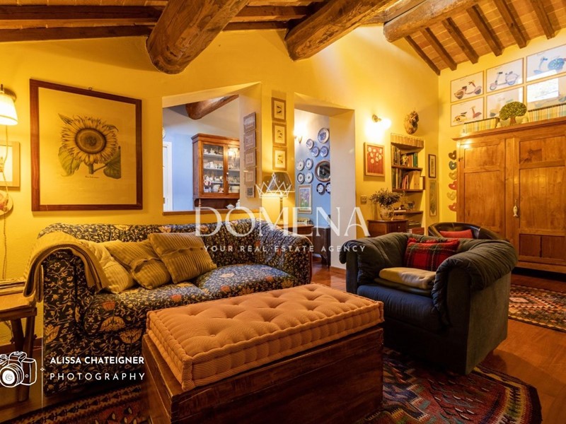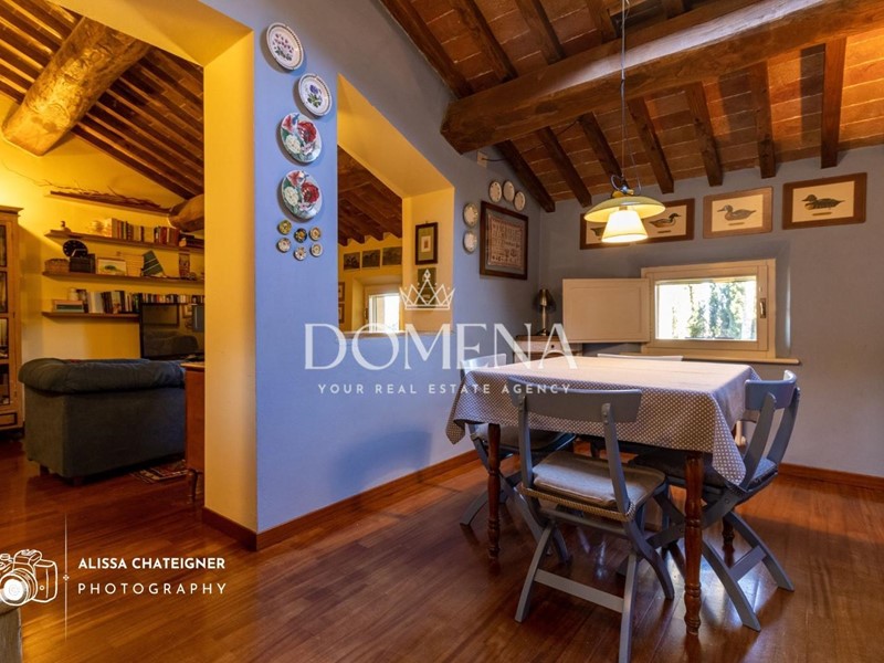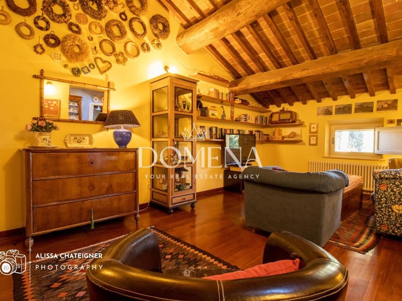 Situato all'interno di una suggestiva villa storica a soli 5 minuti da Siena, questo affascinante appartamento al secondo piano cattura l'essenza del carattere toscano con le sue travi a vista e il design raffinato. Recentemente ristrutturato, l'immobile offre un'esperienza di vita unica.