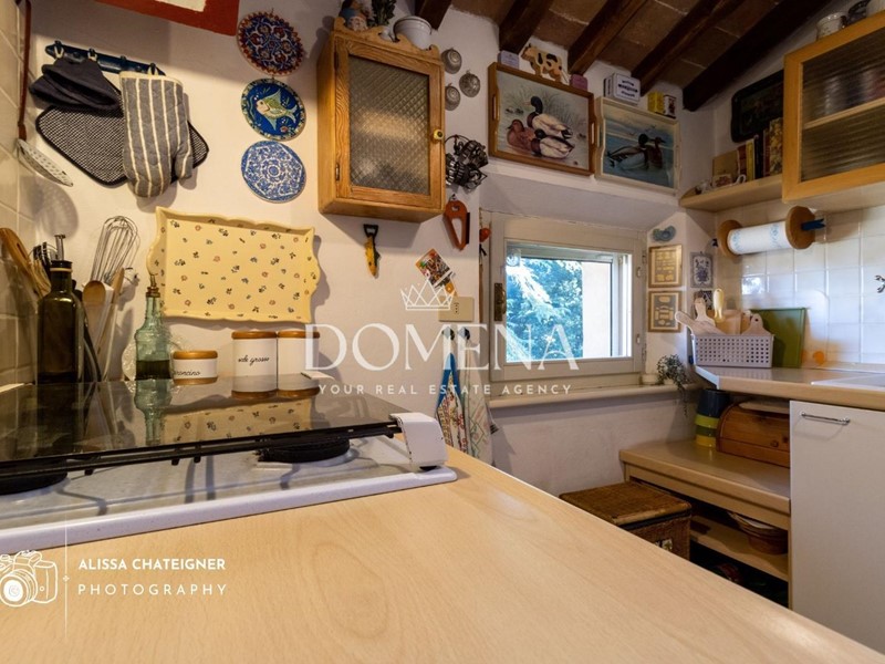 La zona giorno è costituita da una sala cucina aperta, dove le travi a vista creano un'atmosfera accogliente. La cucina è completamente attrezzata con elettrodomestici moderni e offre uno spazio perfetto per cucinare e intrattenere ospiti.