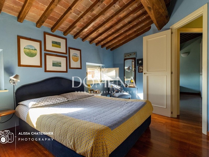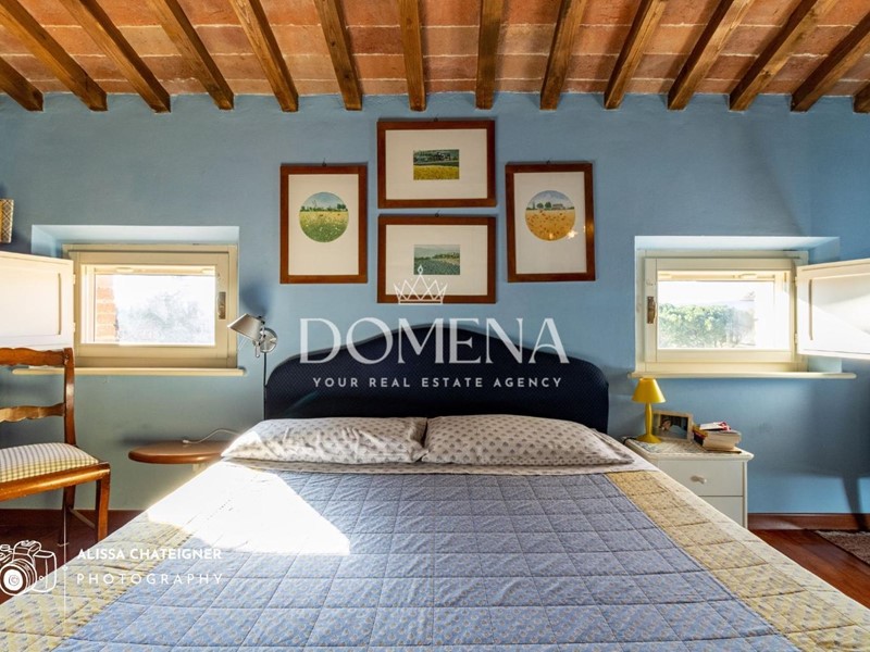 L'appartamento dispone di due camere matrimoniali spaziose, ognuna arredata con gusto e caratterizzata dalla suggestiva vista panoramica sulla campagna circostante. La luce naturale inonda gli spazi grazie alle finestre che si affacciano su paesaggi mozzafiato.