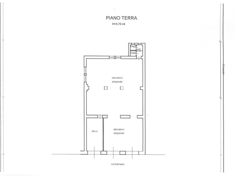 Un ampio locale alla strada, di mq. 180 ca., attualmente ad uso laboratorio, nella zona Madonnella, in Via Dalmazia tra Via Arcivescovo Vaccaro e Via Gorizia. L'immobile ha tre accessi dalla strada; dall'ingresso centrale accediamo al primo ambiente, che conduce nella zona laboratorio, molto ampia e particolarmente comoda per la pianta quadrata e le volte alte 3,70 ca.; un particolare degno di nota è la luce e, soprattutto il ricambio di aria, garantiti dalla presenza di ben 4 finestre affacciate sull'interno dello stabile. Il secondo accesso ci porta in una piccola zona dell'immobile destinata alla vendita al pubblico; nel retro del locale sono presenti due servizi e un piccolo ufficio. L'immobile è climatizzato.