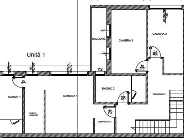 Al piano primo troviamo la zona notte composta da tre camere da letto di cui una con cabina armadio e bagno e ulteriore bagno di servizio per le altre due camere.