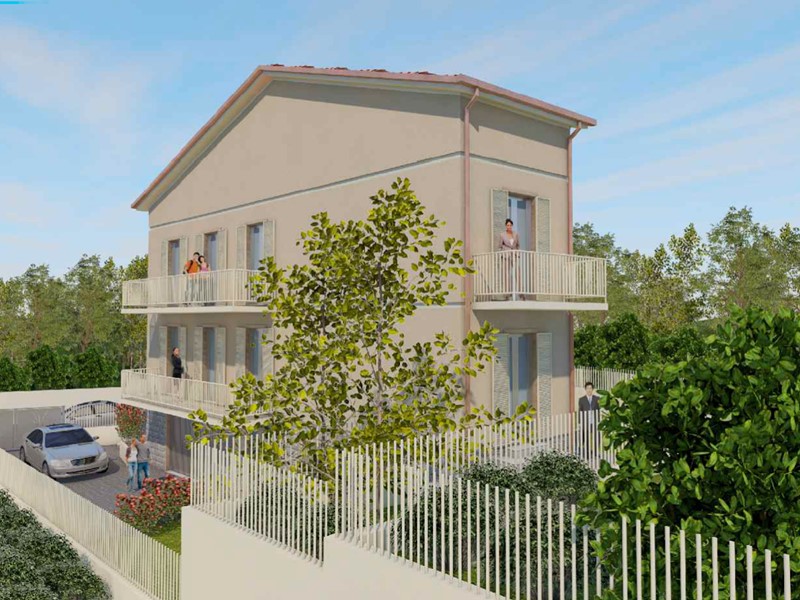 Nuova costruzione in zona tranquilla ma vicina ai servizi, appartamento in bifamiliare composta al piano primo da ingresso in soggiorno, cucinotto, camera matrimoniale, bagno e balcone. Al piano sottotetto camera matrimoniale,, cameretta e bagno. Completano la proprietà giardino al piano terra e due posti auto. L'immobile è costruito con i nuovi criteri di risparmio energetico tra cui riscaldamento a pavimeno, pannelli fotovoltaici, pompa di calore e cappotto termico.